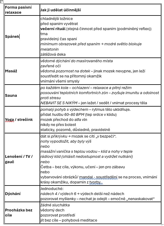 Pár tipů, jak zkvalitnit výše uvedené formy pasivní relaxace.
